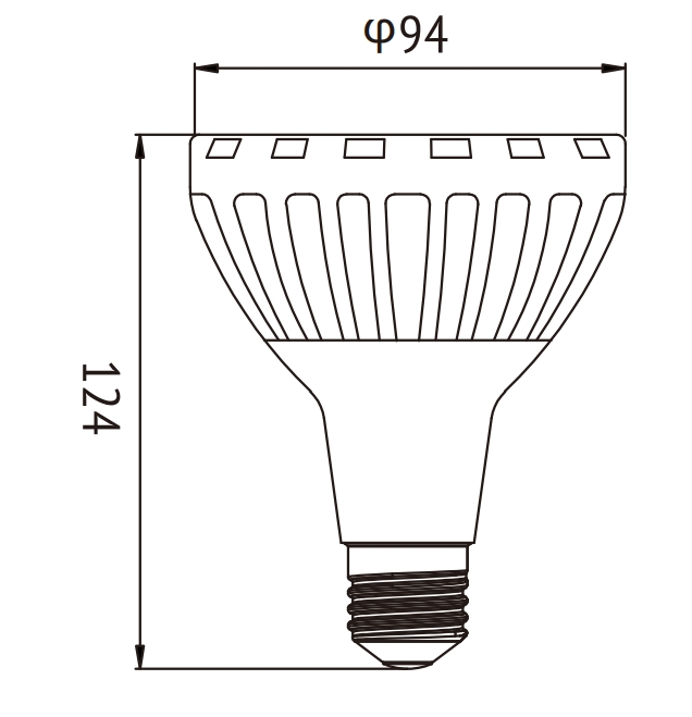 產(chǎn)品型號(hào):KL-PAR3010 尺寸:面徑94mm*高度124mm 功率:30w